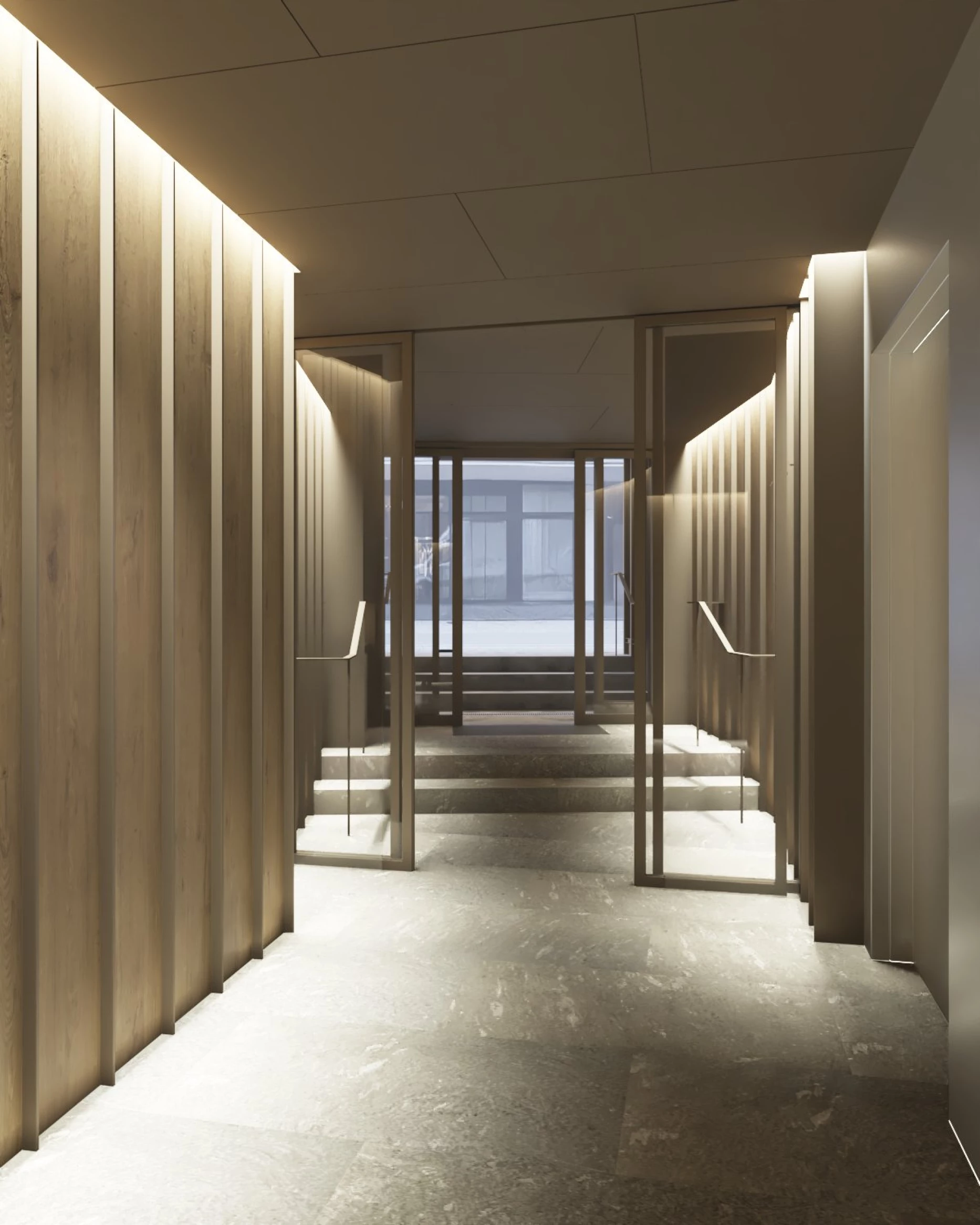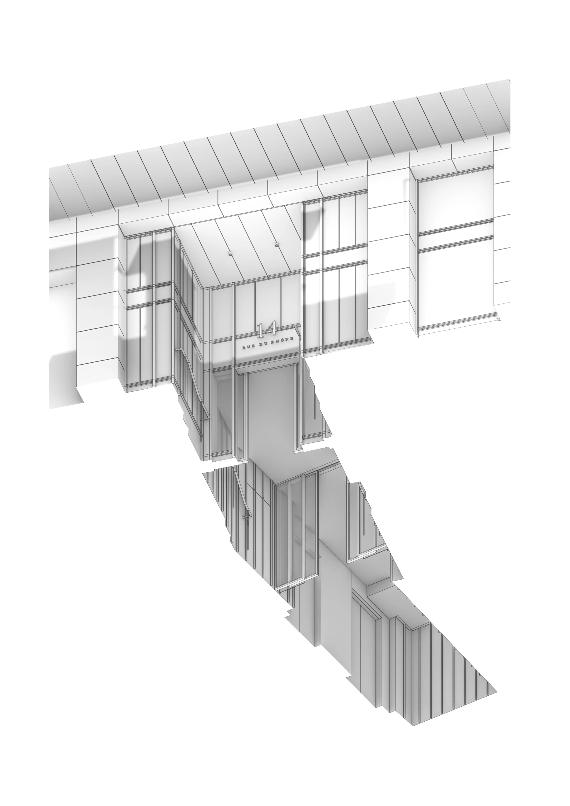 The building has twelve levels: two technical and storage basements, four retail levels, part of which are underground, six administrative levels, a mixed level of offices and studios, and a technical roof which will also house a vast photovoltaic park. While the shops and residential units remain outside the scope of this building permit application, all administrative areas, facades and common spaces are affected by the transformation. The challenge is twofold: to bring the building up to contemporary architectural and technical standards, while at the same time making it part of an ambitious sustainability program. The condominium is aiming for Minergie certification, a guarantee of energy efficiency and comfort. To achieve this objective, all technical installations will be replaced, and the facades, which are now dated, will benefit from complete insulation and new cladding in natural stone. In this way, the building envelope will regain both its aesthetic quality and its thermal performance, in line with today's requirements. Inside, the common areas, halls, stairwells and elevators will be completely renovated. In terms of safety, a fire concept has been drawn up by a specialist engineer. The roof will also be completely redesigned: the acroteria will be reworked to reduce their visual impact, new technical installations will be discreetly installed, and a generously sized photovoltaic park will exceed legal requirements, affirming the project's commitment to energy transition.