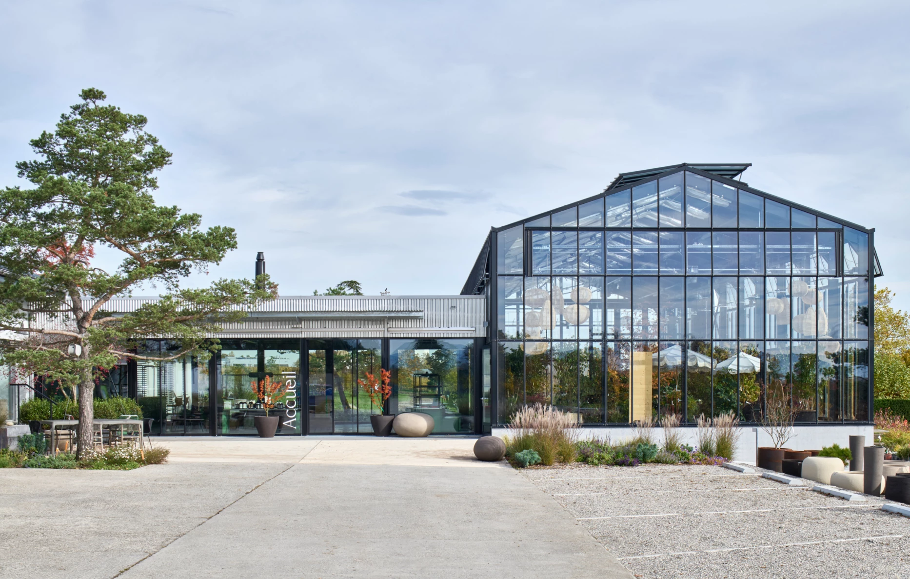 Nous avons eu le plaisir de réaliser la nouvelle serre Jacquet à Satigny. Une structure légère où la lumière compose avec le végétal et les saisons. Le projet révèle et prolonge le paysage au service d’un espace en constante évolution.